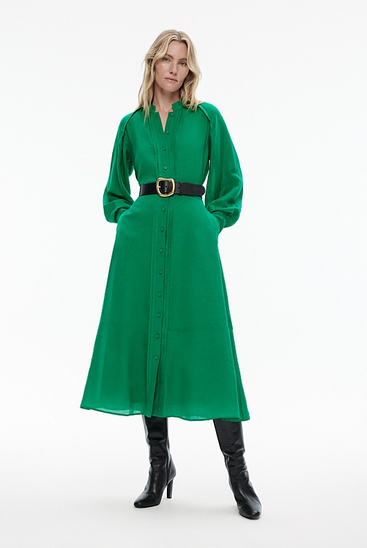 High Neck Pintuck Midi Dress - Viridian Green