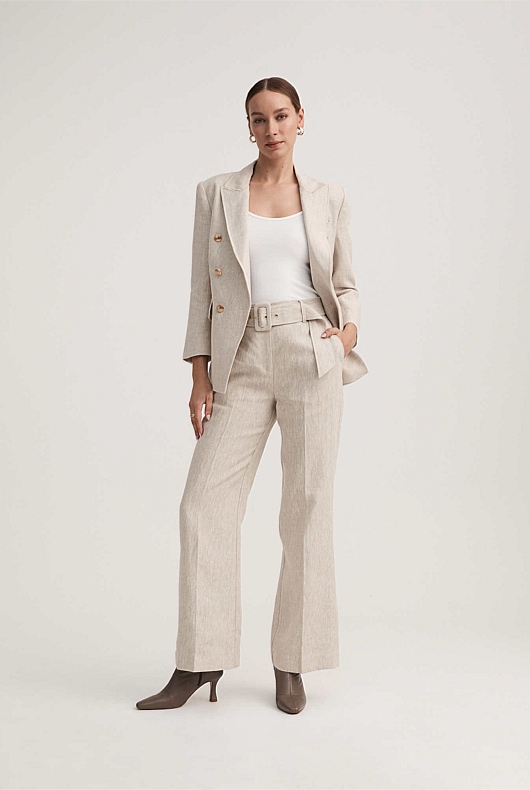 Linen Double-Breasted Blazer - Washed Green