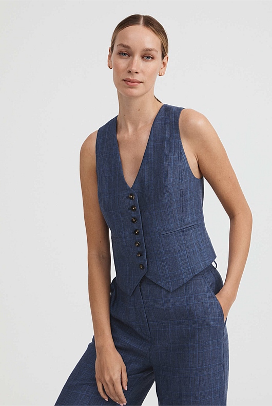 Linen Glen Plaid Waistcoat - Royal Blue
