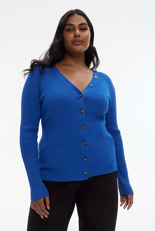 Button Through Rib Longline Cardigan - Eclipse Blue